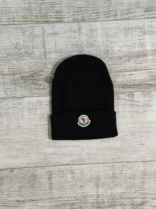 Чорна шапка для підлітків чоловіків від Moncler.Розмір єдиний, гарно тягнеться . 100% акрил Заміри додаю на фото