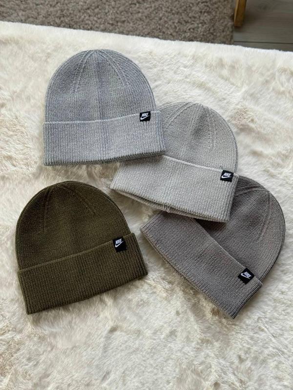 Теплая шапка найк (nike) разных цветов с подворотом, зимняя шапка