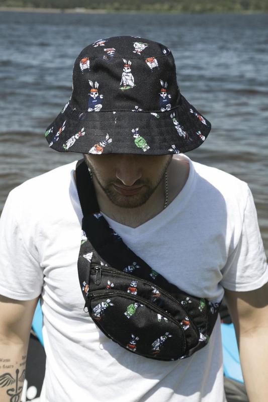 Панама: - панама двостороння; - поля оптимальної довжини, ущільнені; - комфортна посадка; - збоку фірмова нашивка INTRUDER; - матеріал: Габардин. Бананка: - розміри 34 х 14 см; - зручна у використанні та не займає багато місця; - матеріал: високоякісний текстиль із принтом; - довжина ременя регулюється; - пошиття та вся фурнітура високої якості; - містка сумка, з можливістю носіння як на грудях/на плечі, так і на поясі; - є два відділення на змійці.