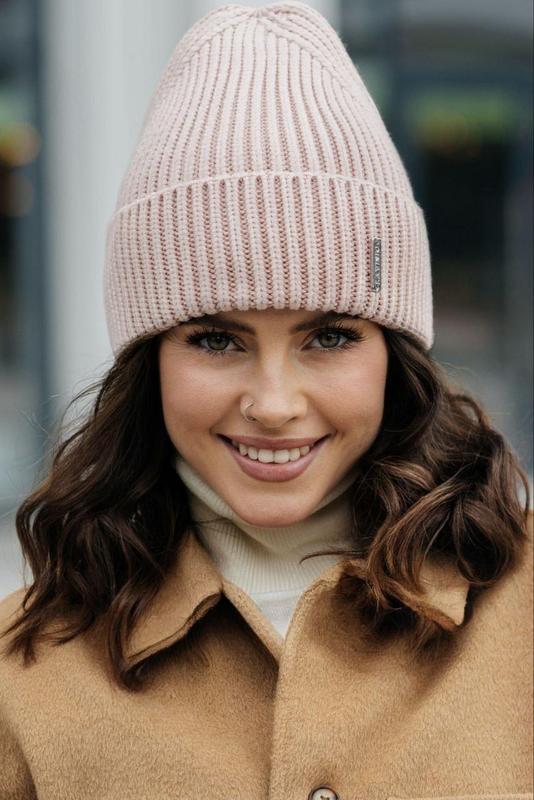 Шапка женская,шапкашемир,шапка из шерсти, шапка без подклада пудра