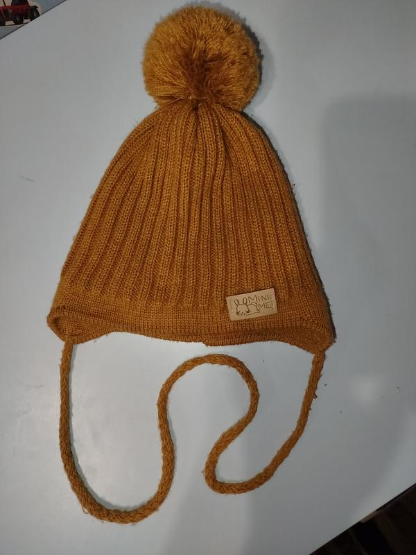Шапка горчичного цвета с помпоном, ориентировочно на 9-12м