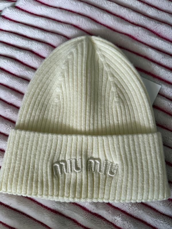 Шапка в рубчик молочного кольору ,жіноча в стилі miu miu,стан нова
