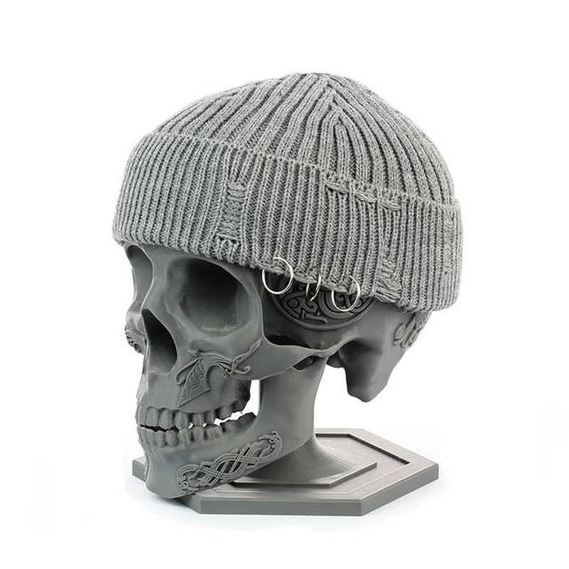 Рваная шапка-докер с пирсингом унисекс. рваная шапка бини серая