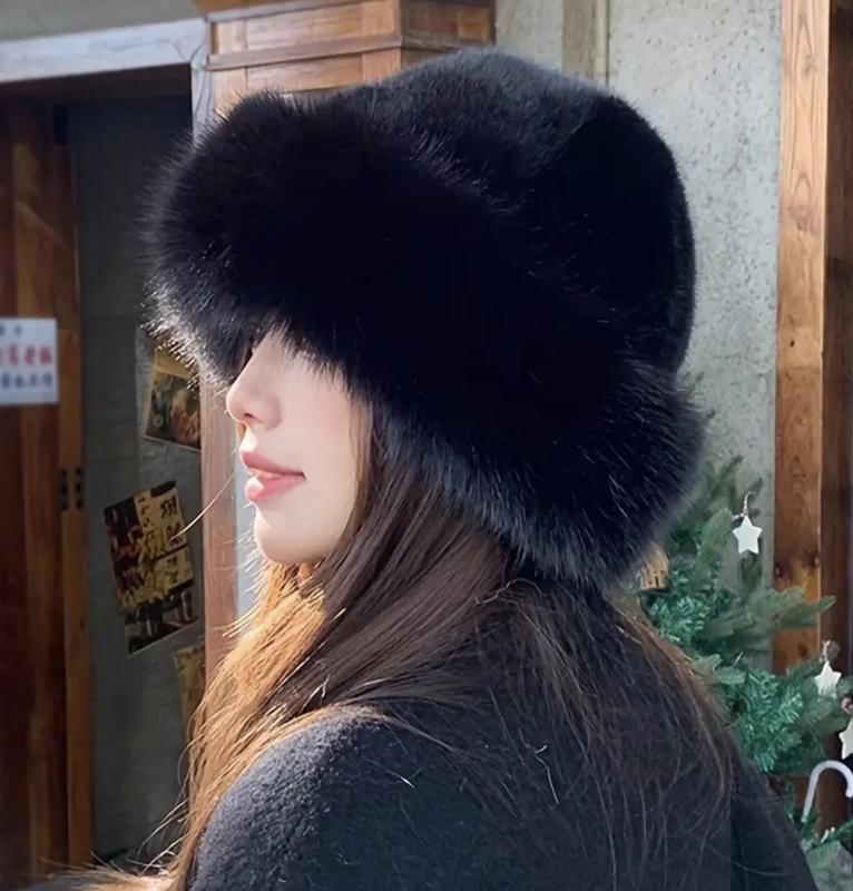 Жіноча шапка хутро хутряна монгольска шапка з хутром стильна пухнаста чорна плюшева панама...