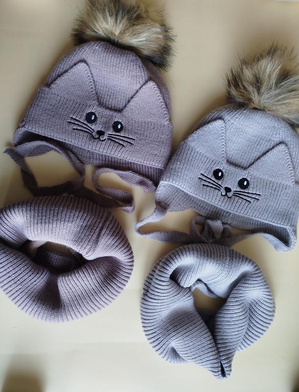 красивый теплый набор❤️ в наличии размер 50-52см приблизительный возраст 3-5роков. шапочка по всей площади утеплена флисом. хомут двойной. помпон на кнопке замеры по желанию. с радостью ответь на все Ваши вопросы)