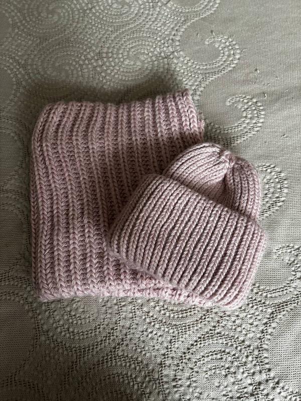 дуже теплий набір , не носився , снуд можна замість шапки, колір дуже красивий , рожевий , містить шерсть