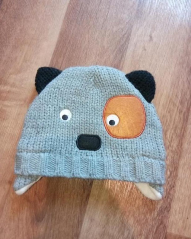 фирменная двойная теплая шапка на флисе в идеальном состоянии размер указан на 4-9месяцев
