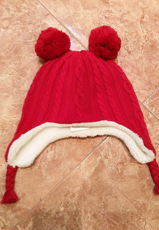Очень красивая, мягкая, теплая и комфортная шапка Gymboree M (5-7 г.) С двумя балабонами и на ушках косички. Носилы очень мало,бо было много и др. шапок.