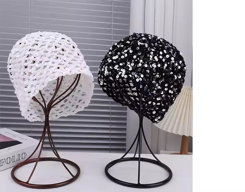Стильні вʼязана шляпи кроше аксесуар для волосся камні стрази паєтки