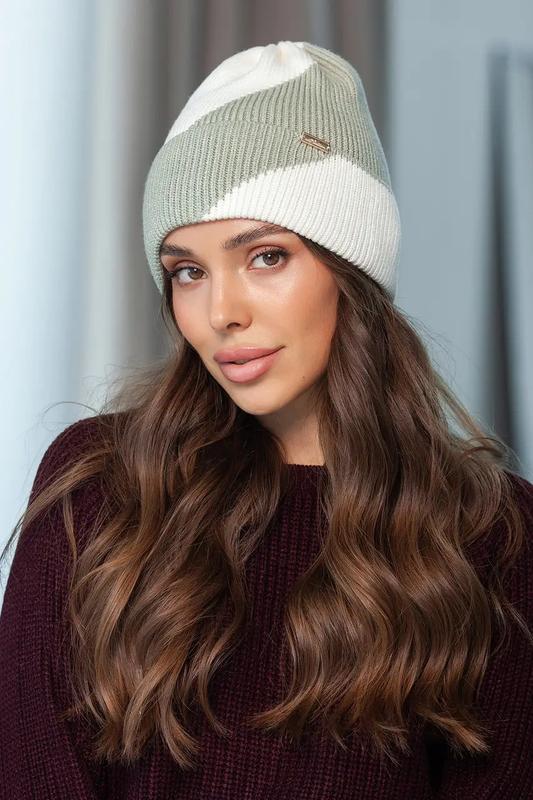 Шапка двухцветная, шапочка женская, шапка - бини белая фисташка