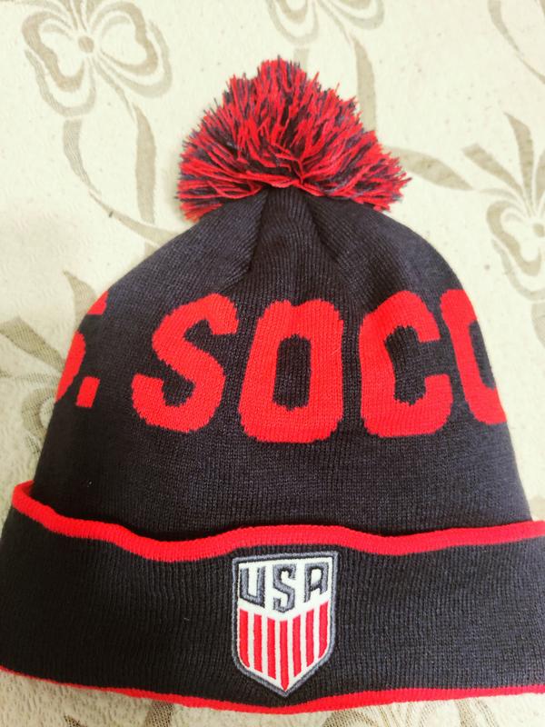 Тепла шапка на хлопчика 56-58 см.. Двухслойная с отворотом. Icon Sports US. Soccer Federation. Красный с темно синим