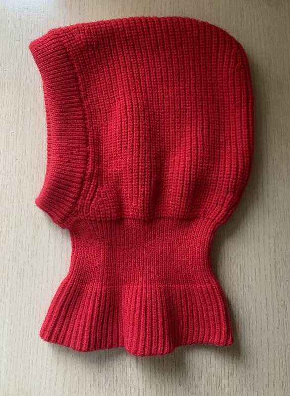 Капор червоний, зимова шапка-шарф, шапка-капюшон яскрава в’язана, зв’язаний капюшон