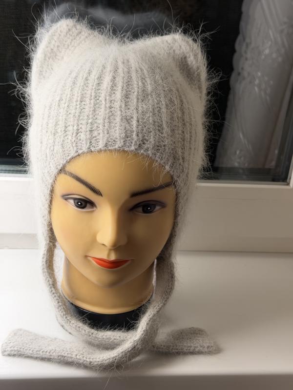 Авіатор з вушками Пряжа: Ангола Колір: світло сірий, сніговий барс Розмір : 55-57 Ручна робота❤️