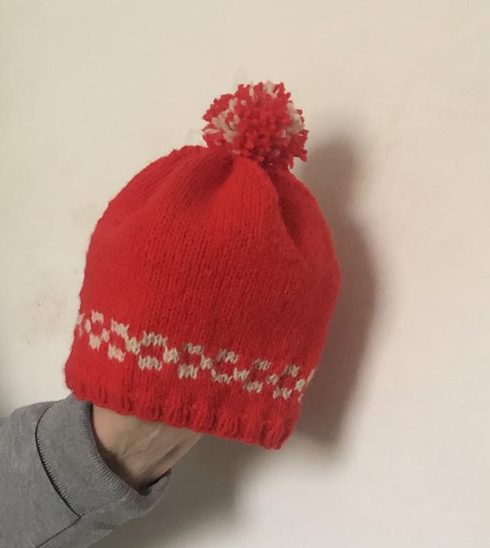 Шапочка для девочки связана из шерсти объем головы 42см высота 18см