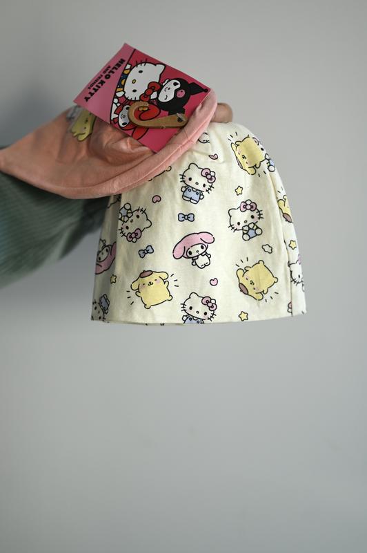 Дитяча шапочка Hello Kitty (Sanrio) Мила та зручна шапочка для малюків із яскравим принтом улюблених персонажів Hello Kitty, My Melody та Pompompurin. Виготовлена з м’якої, приємної на дотик бавовняної тканини, яка добре пропускає повітря та не подразнює ніжну шкіру дитини. Шапочка легка, комфортна, ідеально підходить для щоденного носіння у теплу пору року або як демісезонний варіант. Акуратний пошив та ніжні пастельні кольори роблять її стильним доповненням до дитячого гардеробу. Характеристики: • Матеріал: бавовна • Дизайн: Hello Kitty (Sanrio) • Колір: молочний з рожевими елементами • Підходить для немовлят та маленьких дітей • М’яка, дихаюча, комфортна