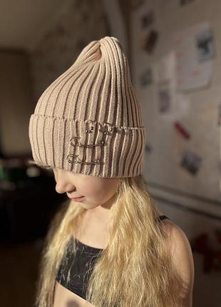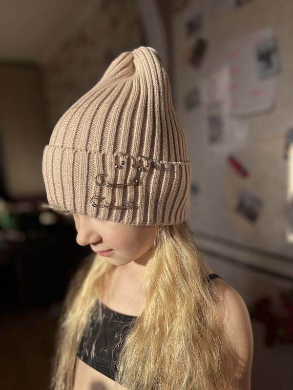 Нова шапка для дівчинки хіт цього сезону .В наявності в чорному,шоколадному та бежевому кольорі. Шапка одинарної вʼязки Склад:52% віскоза, 28%еластан, 22%нейлон Розмір one size Вік- від 3 років до підлітків, підійде навіть на дорослих