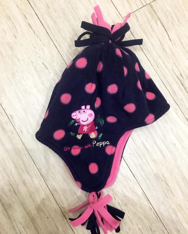 Крута шапка зі свинкою пеппою, тепленька, нова, але без бірки. не носили, бо виявилась замала( розміри глибина 16 см, біля вух 23 см об'єм 48