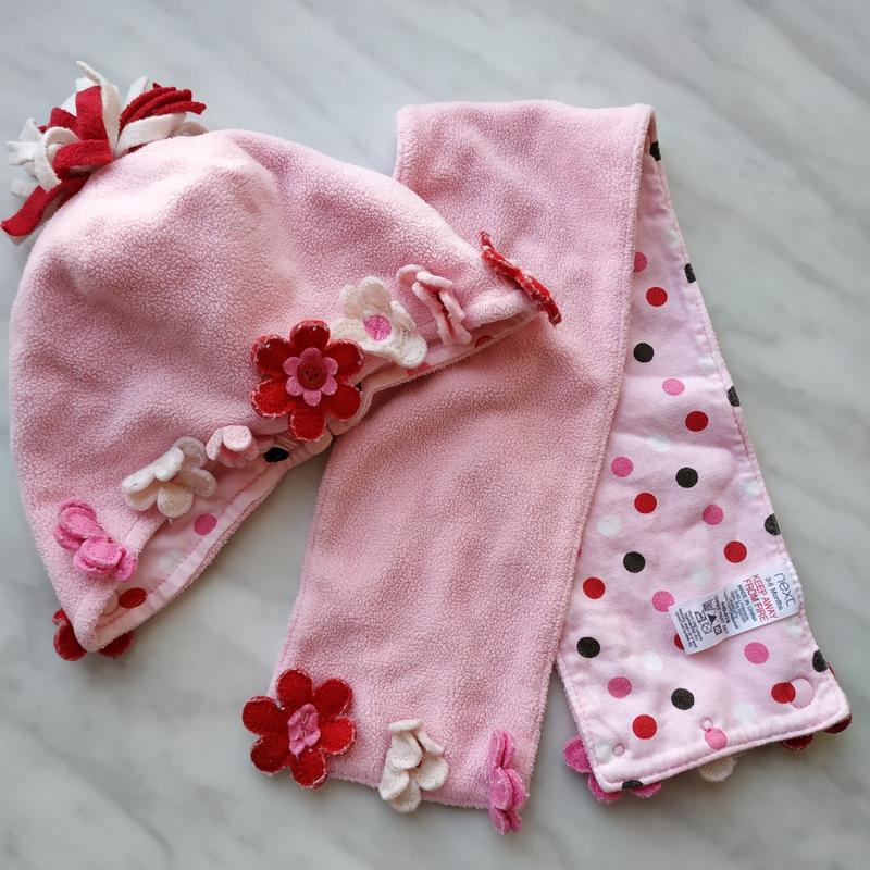 супер комплект для девочки. теплый флис на приятной х/б подкладке. на шапке сзади резиночка, хорошо сидит на головке. на все вопросы отвечу. смотрите другие мои объявления. много вещей для девочки.