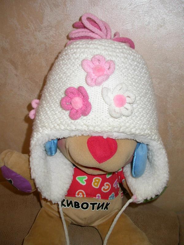 Зимняя шапка на овчине на девочку 2-4лет.