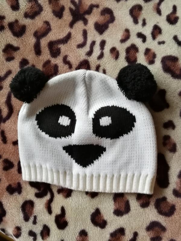 Чёрно-белая детская шапка панда. На окружность головы 48-54 см.