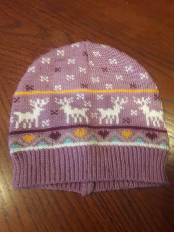 Фіолетова шапочка з оленями, дуже гарна і зручна