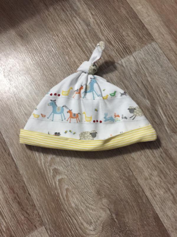 Детская шапочка. Мягкая, и очень милая, не сползает с головы ребёнка. Очень удобная. 3-6 месяцев, но размер немного больше