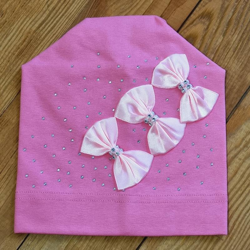 Шапка для девочек, с пришитыми тремя бантиками и стразами на весну-осень, которая не только сбережет и согреет ребенка, но и придаст ей очень стильный вид, одинарная легкая вязка. Изготовлена из высококачественной итальянской пряжи. Цвет: Розовый, Состав: Трикотаж, 100% хлопок Сезон: Весна-Осень Размер:50-54 Страна производитель: Украина Производитель: Vertex
