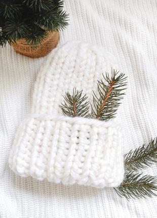 Біла шапка ручної роботи із напівшерсті. Тепла, стильна та дуже м’ягенька. Також є такі кольори: - сіра - синя - молочна - чорна - бежева