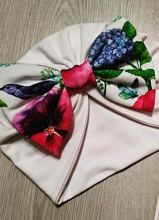 Очень красивый тюрбан на девочку. Двойной. Бант сьемный На объем головы до 49. возраст 1-2 года
