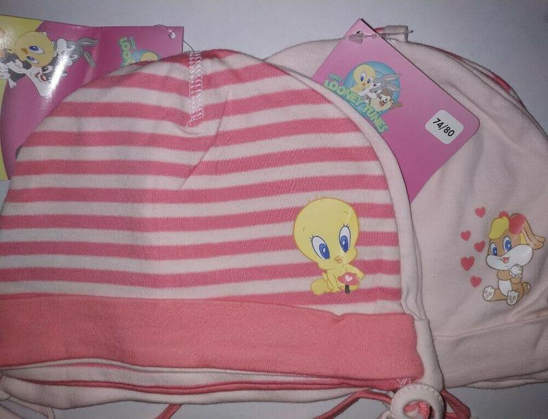 Набір шапочок на зав'язках (рожева і в смужку) 2шт. р. 74/80 (6-12 міс) Ціна 70 грн за комплект 2 шт