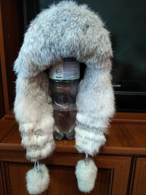 Шапка зимняя р 54.Верх болоний в принт снежинки.Мех кролика.Внутри флисовая подкладка.