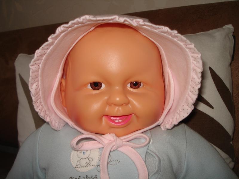 Шапочка-панамка Sofija По бирке: - окружность 42 см. - рост 74 см. Цвет - нежно розовый. Состав: 100% хлопок. Очень мягкая и нежная. Край шапочки-панамки декорирован рюшей в мелкие горошки. Очень красиво смотрится на малышке! Ушки хорошо прикрываются (фото №3). Шапочка-панамка двойная. Отлично подойдёт на тёплую весну, осень. Одевали несколько раз. Состояние отличное.