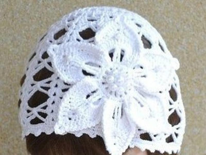 Оригинальная вязаная шапочка с цветком и бусинами. Обхват головы 55см. Могу связать на заказ нужного размера с цветком или без него