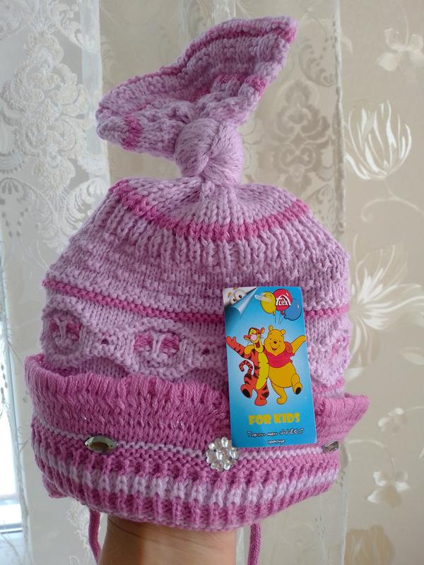 Шапка для девочек на завязках. Размер 48. Высота шапочки регулируется.