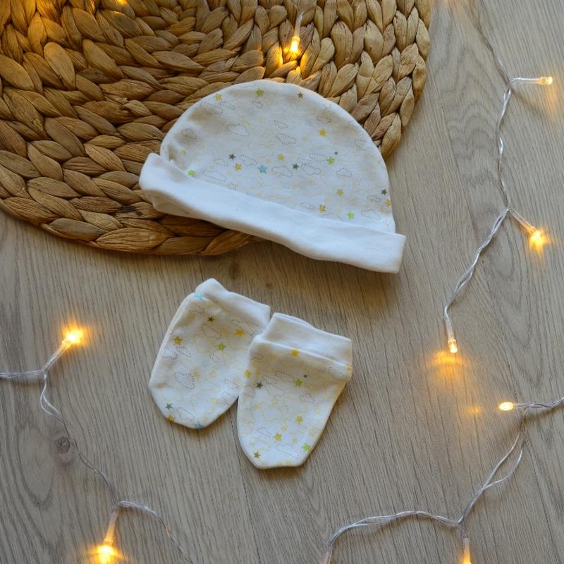 Шапочка и антицарапки 0-1мес. 50-56см.