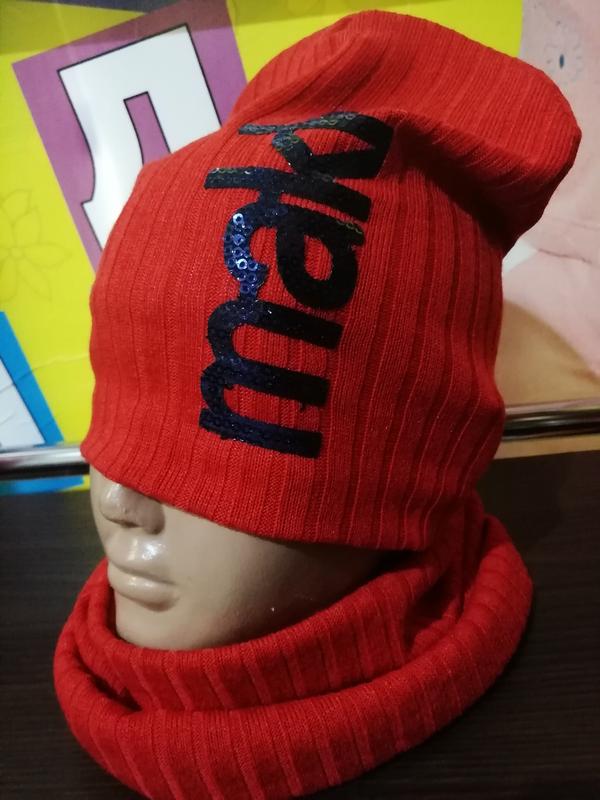 Шапка с хомутиком трикотаж с подкладкой для девочек