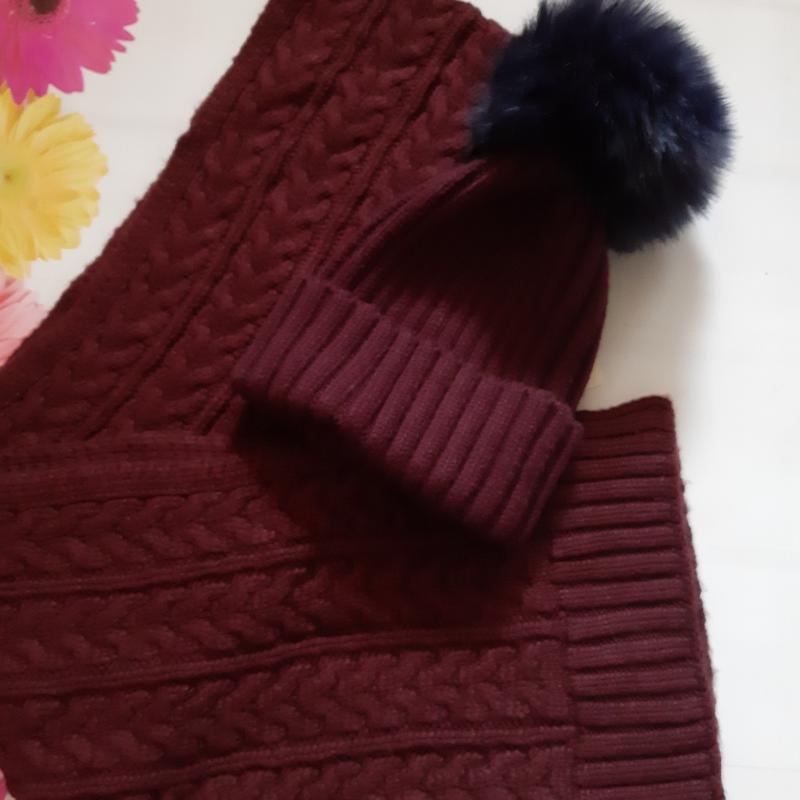 Набор для взрослого или подростка. Шапочка чуть темнее шарфа Цвет ближе к фиолетовому