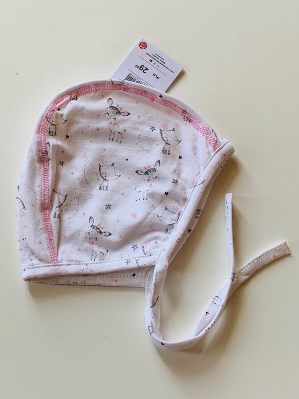 Бавовняні шапочки на зав'язках з ніжним принтом. Вартість вказана за 1 шапочку.