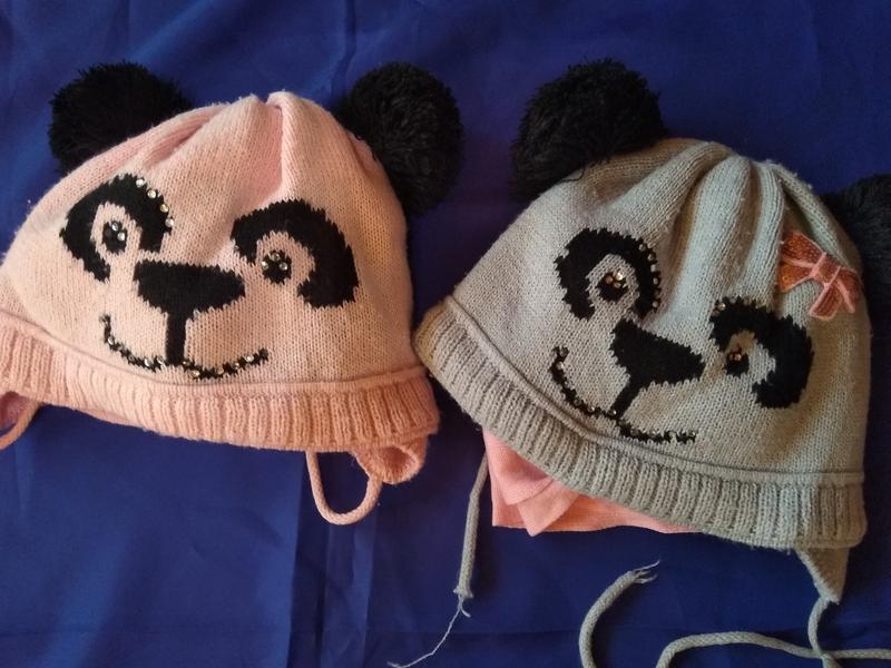 Шапочки в гарному стані, подвійні, на холодну осінь. Мої діти носили від 3-4 р. до 6-7р. Ціна за 2 шапочки з шарфіками 150 грн.