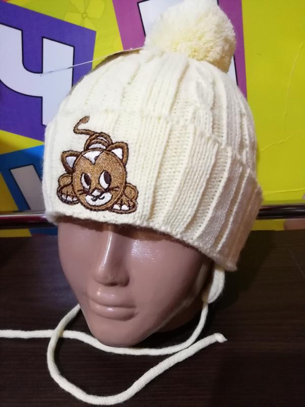 Шапка для девочек плотная вязка с флисом на 2,3 года ширина шапки 20см, высота 18см