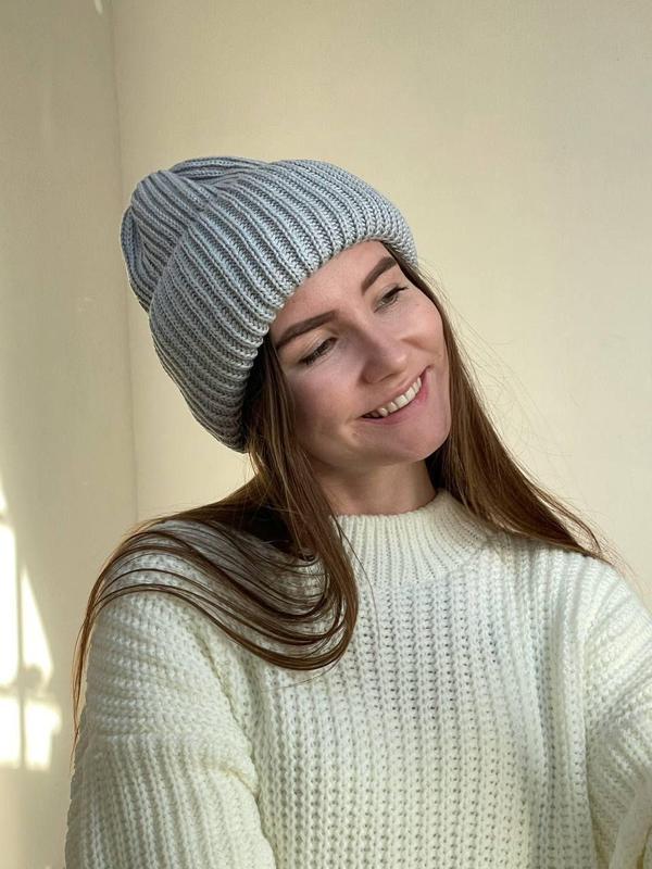 Необхідна деталь осіннього образу - тепла в'язана шапка👌🏻 ⠀ В наявності багато кольорів : гірчичний, пудра, сірий, рожевий, оливковий, зелений, ліловий, голубий, білий, бежевий, пісочний, чорний Нитка : 50 % бавовна, 50 % акрил Заміри виробу: по ширині 22+ см, висота 20+ см, підворот 10 см, не регулюється