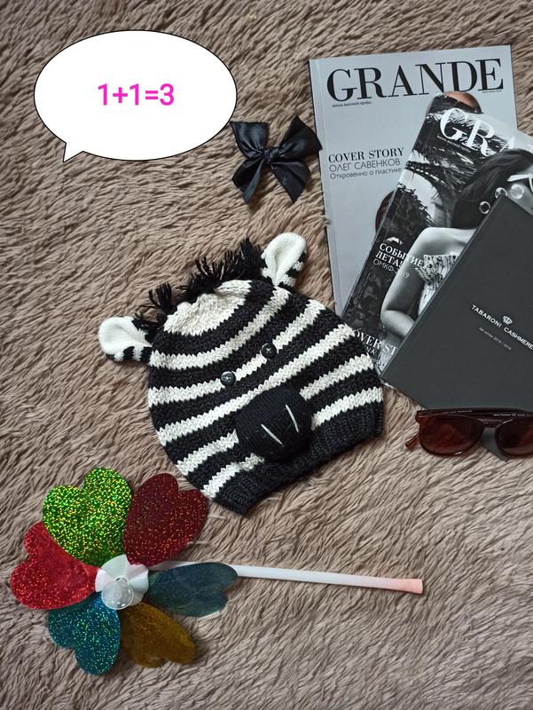 Такого еще не было!!!🤪 Супер акция на весь летний ассортимент и также детскую одежду "1+1=3" 🎁🎁🎁 Успейте купить всё самое лучшее 😻 Состояние отличное. Классная шапка "Зебра" с объемным носиком. Смотрится супер😍 Размер универсальный, на 1,5-3 года примерно