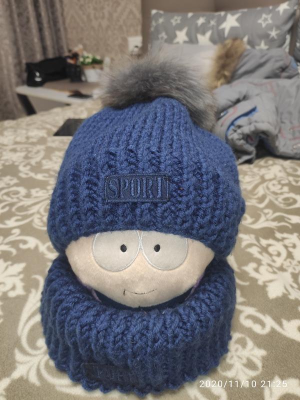 На ОГ 46-50, примерно на 2-3 года, нить на половину шерсть. Помпон натуральный кролик
