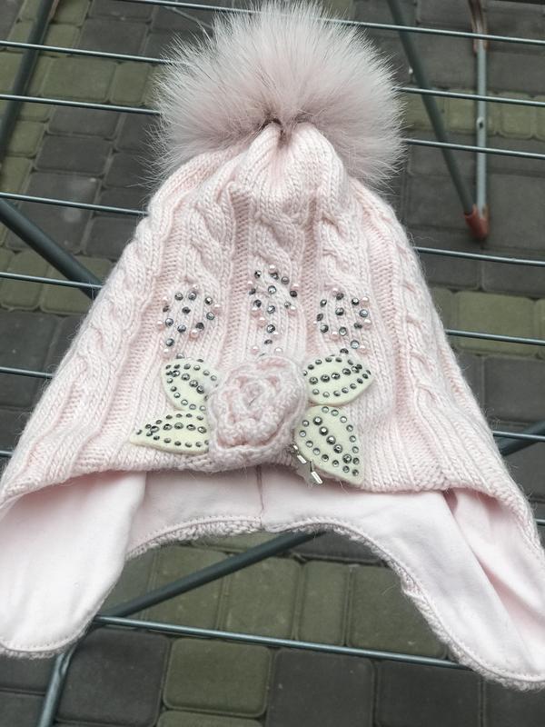 Красивая и качественная шапка дорогой турецкой фирмы,на хб подкладке,помпон натуральный.размеры 51,52