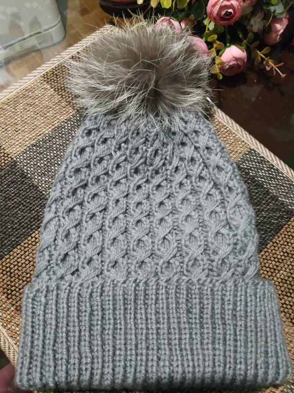 Шикарная шапочка на зиму с отворотом( ручная работа. В состав нити входит шерсть, бубон сьемный