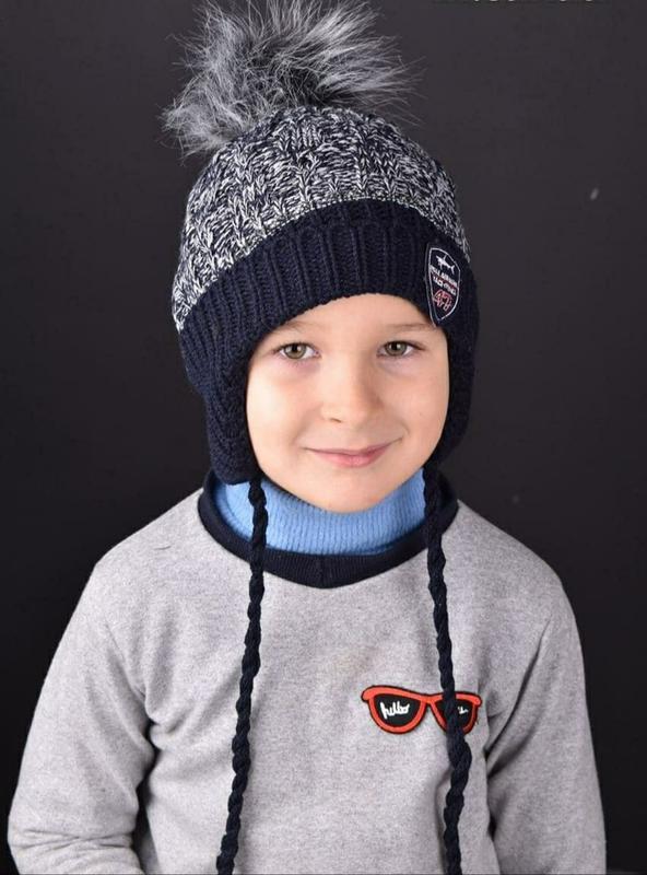 УТЕПЛЕНА ДИТЯЧА ШАПКА👌 ❄️ЗИМА❄️ Склад: wool Матеріал: в'язання язка Підкладка: фліс! Розмір: універсальний ЗАМІРИ: Висота - 17 см, Ширина - 15 см Заміри виконані в спокійному НЕ розтягнутому стані, можуть відрізнятися на 1см. Колір темно синій