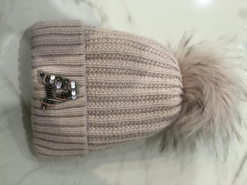 Красивая тёплая шапочка нежного пудрового цвета,с флисовым подкладом внутри.Изготовитель Польша
