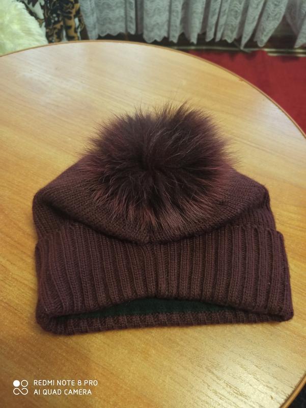 Шапочка теплая мех натуральный в жизни ярче бордовая.Одевала пару раз.