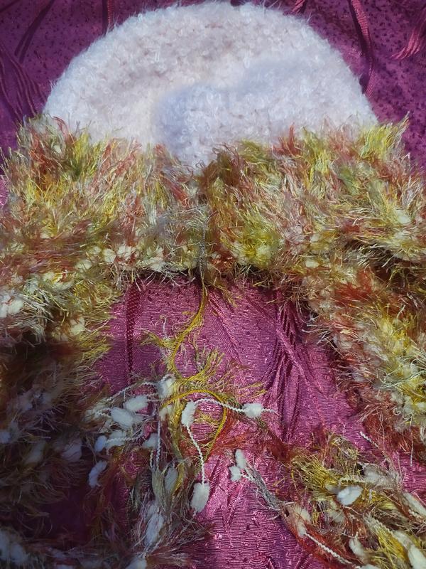 Шапка теплая,очень красивая,обвязана фактурной пряжей.Новая.
