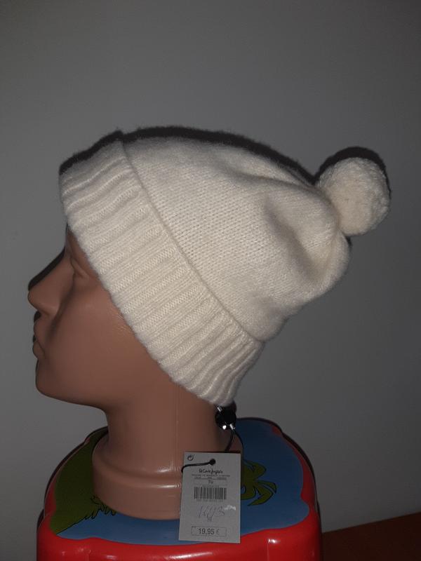 Теплая шапка с бубоном Молочный цвет шерсть Новая Покупалась в Испании.